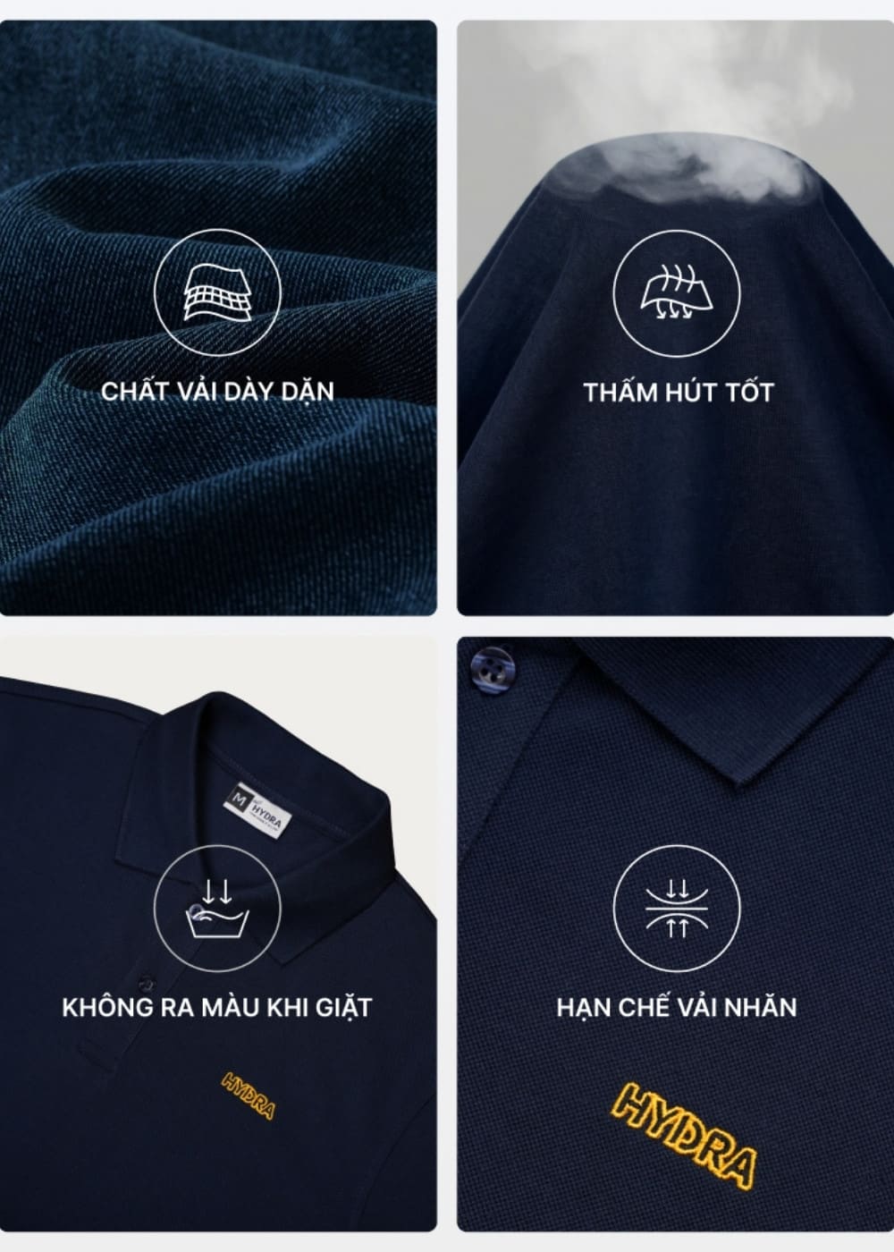 Một nỗi lo phổ biến khi mua áo polo là áo nhanh bai dão, xuống màu. Nhưng nhờ kỹ thuật dệt hiện đại và quy trình nhuộm màu tiên tiến tại HYDRA, sản phẩm luôn giữ được sắc thái nguyên bản và form dáng chuẩn chỉnh như lúc mới mua, giúp bạn luôn tự tin mỗi khi xuất hiện.