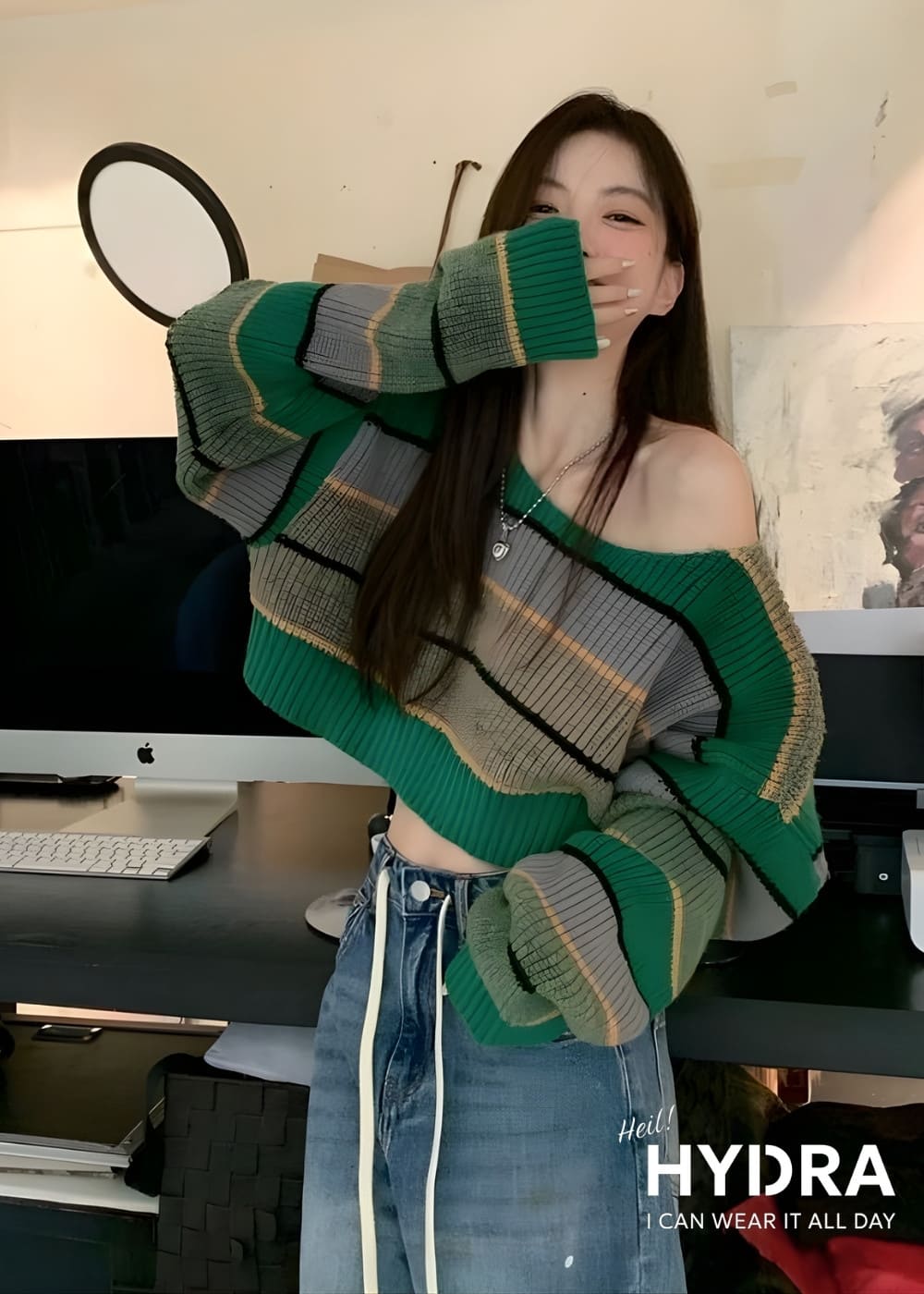 Áo croptop len tăm mix quần jeans lưng cao