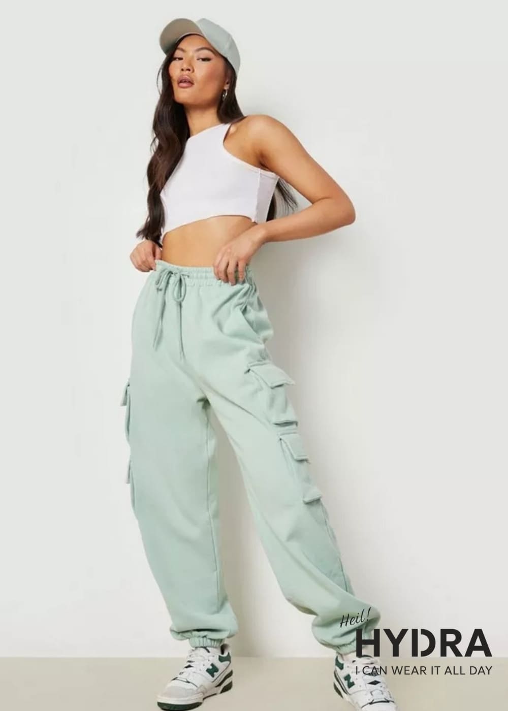 Áo croptop kết hợp quần cargo túi hộp là lựa chọn chuẩn phong cách streetwear cho những cô nàng yêu sự năng động, tạo nên hiệu ứng "trên hẹp dưới rộng" cực kỳ tôn dáng. Bạn nên ưu tiên các mẫu áo màu trung tính như trắng, đen, be phối cùng quần xanh olive hoặc nâu để giữ được sự tinh tế. Đừng quên mix thêm một đôi boot cổ thấp hoặc sneaker cổ cao để thêm phần thời trang, cá tính.