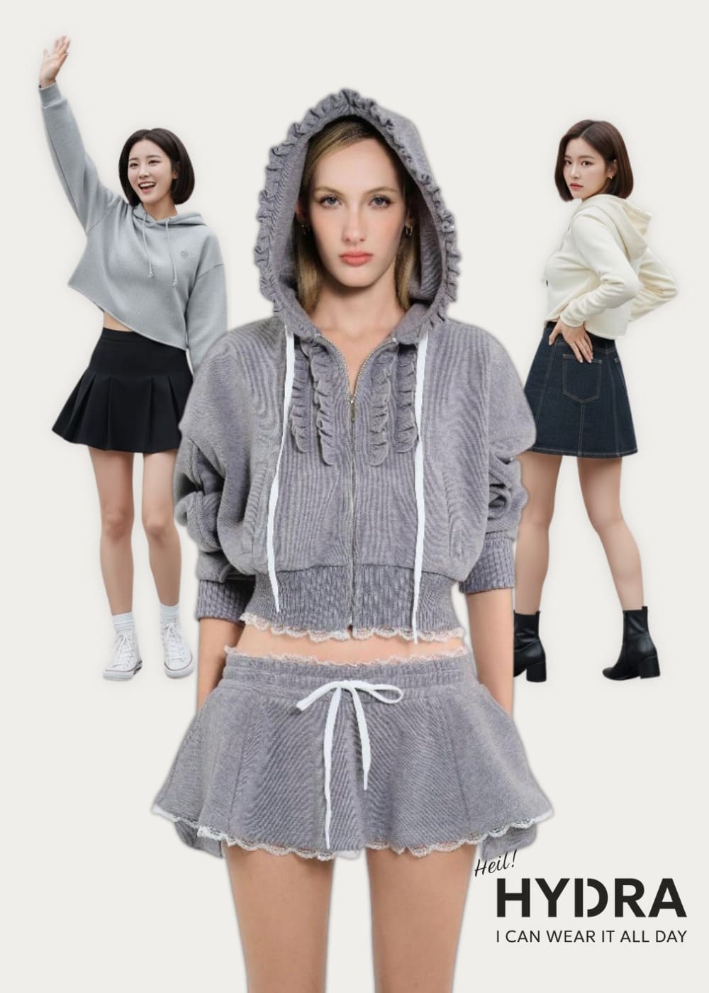 Mix and match Hoodie croptop với chân váy chữ A