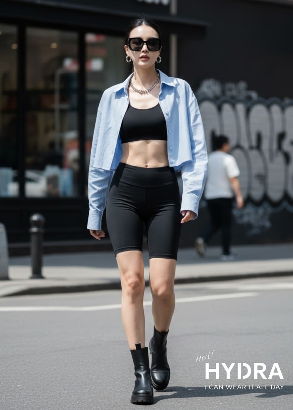 Nhờ thiết kế đặc biệt, chiếc sơ mi dáng lửng rộng nhẹ có thể giúp che khuyết điểm và tạo sự cân bằng cho chiếc quần biker ôm sát đặc trưng, tạo tổng thể hài hòa và hiện đại. Khi mix thêm kính râm cá tính và sneaker hoặc boot cổ thấp, nàng sẽ có ngay một outfit chuẩn streetwear, phù hợp với những buổi đi chơi năng động cần sự thoải mái nhưng vẫn nổi bật.