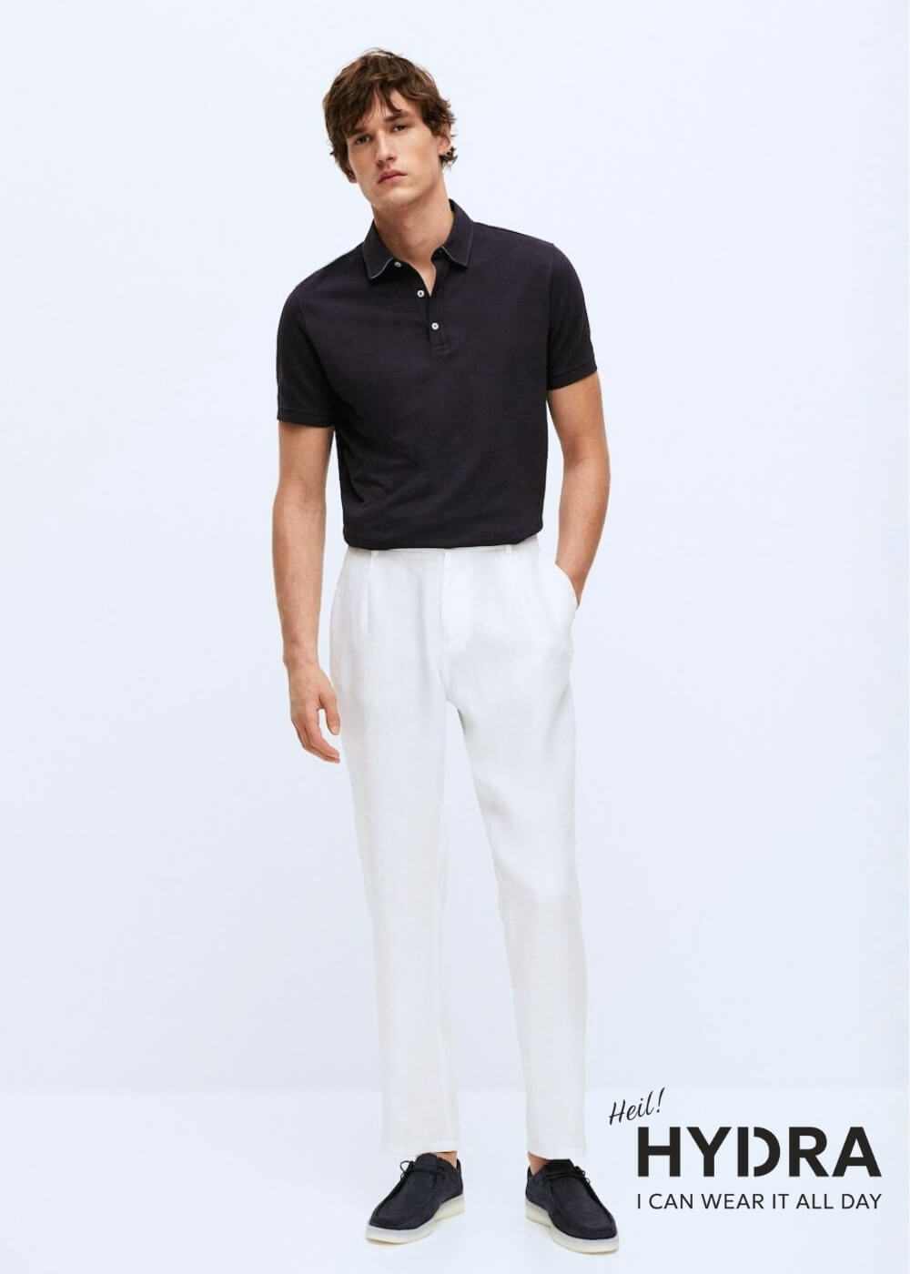 Để theo đuổi phong cách thanh lịch và tinh tế mà không cần quá cầu kỳ, bạn nên chọn một chiếc áo polo trắng hoặc sáng màu. Có thể nói, áo polo cùng quần tây đen hoặc trắng là cách phối đồ Tết đơn giản nhưng vô cùng hiệu quả. Bạn cũng có thể mix cùng giày da đen hoặc nâu để tạo cảm giác chỉn chu hơn khi gặp gỡ họ hàng.