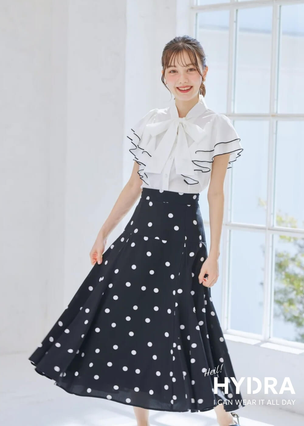 Chân váy midi luôn là item mang đến vẻ mềm mại, nữ tính và rất dễ ứng dụng cho trang phục ngày Tết. Bạn có thể phối chân váy midi chấm bi hot trend kết hợp cùng áo len, áo sơ mi hoặc áo kiểu để tạo diện mạo trẻ trung nhưng vẫn giữ được sự thanh lịch khi đi chúc Tết hay sum họp gia đình.