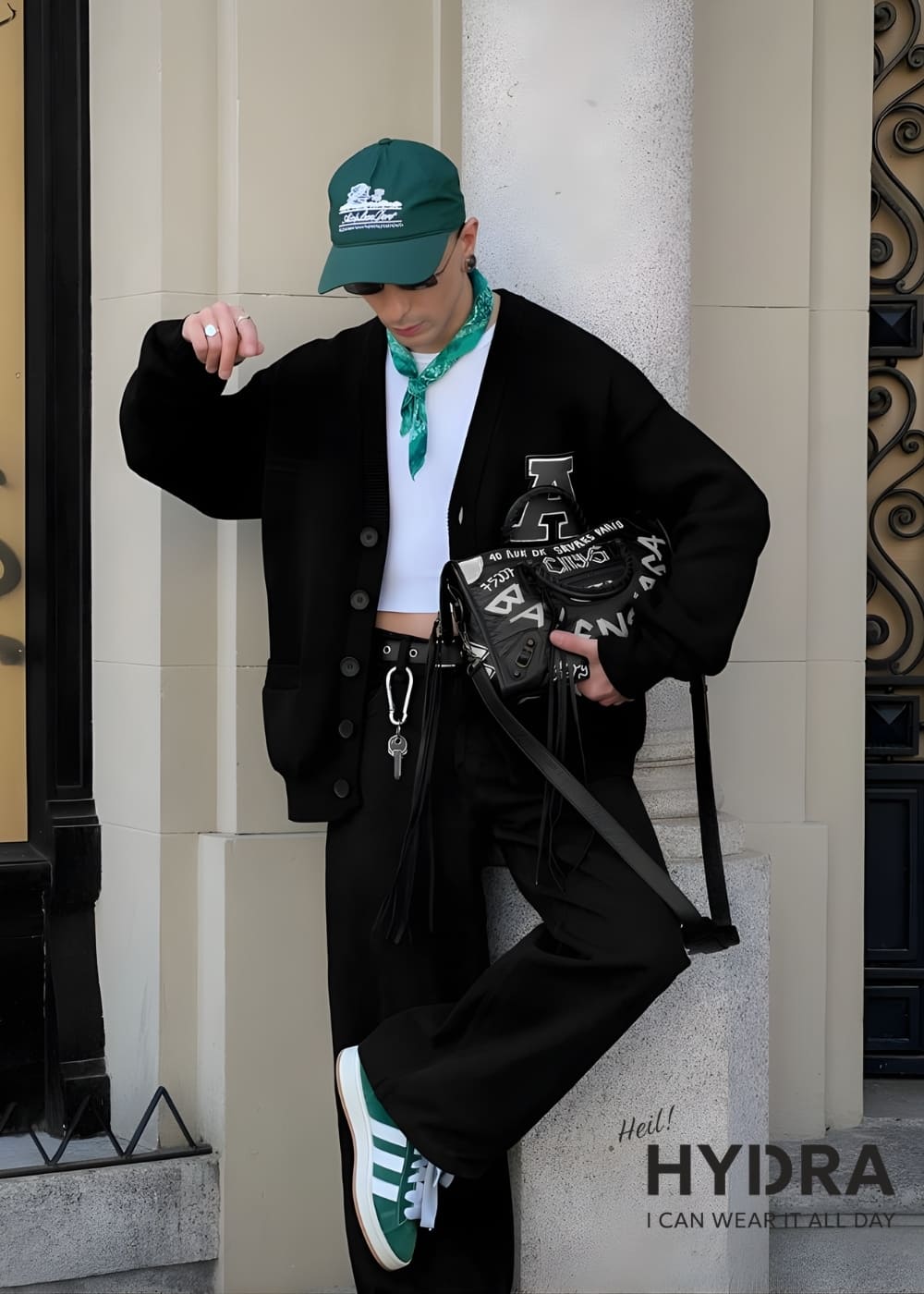Lên outfit đen mix xanh lá