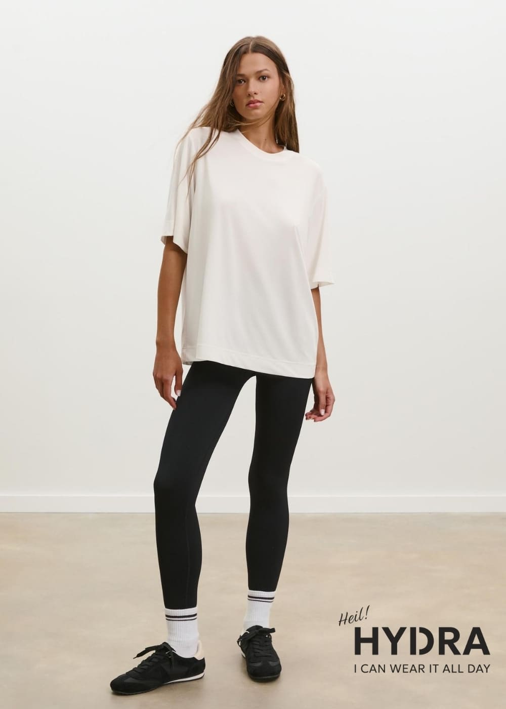 Kết hợp áo thun nữ form rộng cùng quần legging tạo nên một outfit đơn giản nhưng phong cách và hiện đại. Tip phối đồ với áo thun nữ này đặc biệt phù hợp cho những buổi dạo phố, tập thể thao hoặc những ngày cần sự thoải mái. Để không gây phản cảm, bạn nên ưu tiên các mẫu áo thun có độ dài qua mông khi diện cùng quần ôm sát.