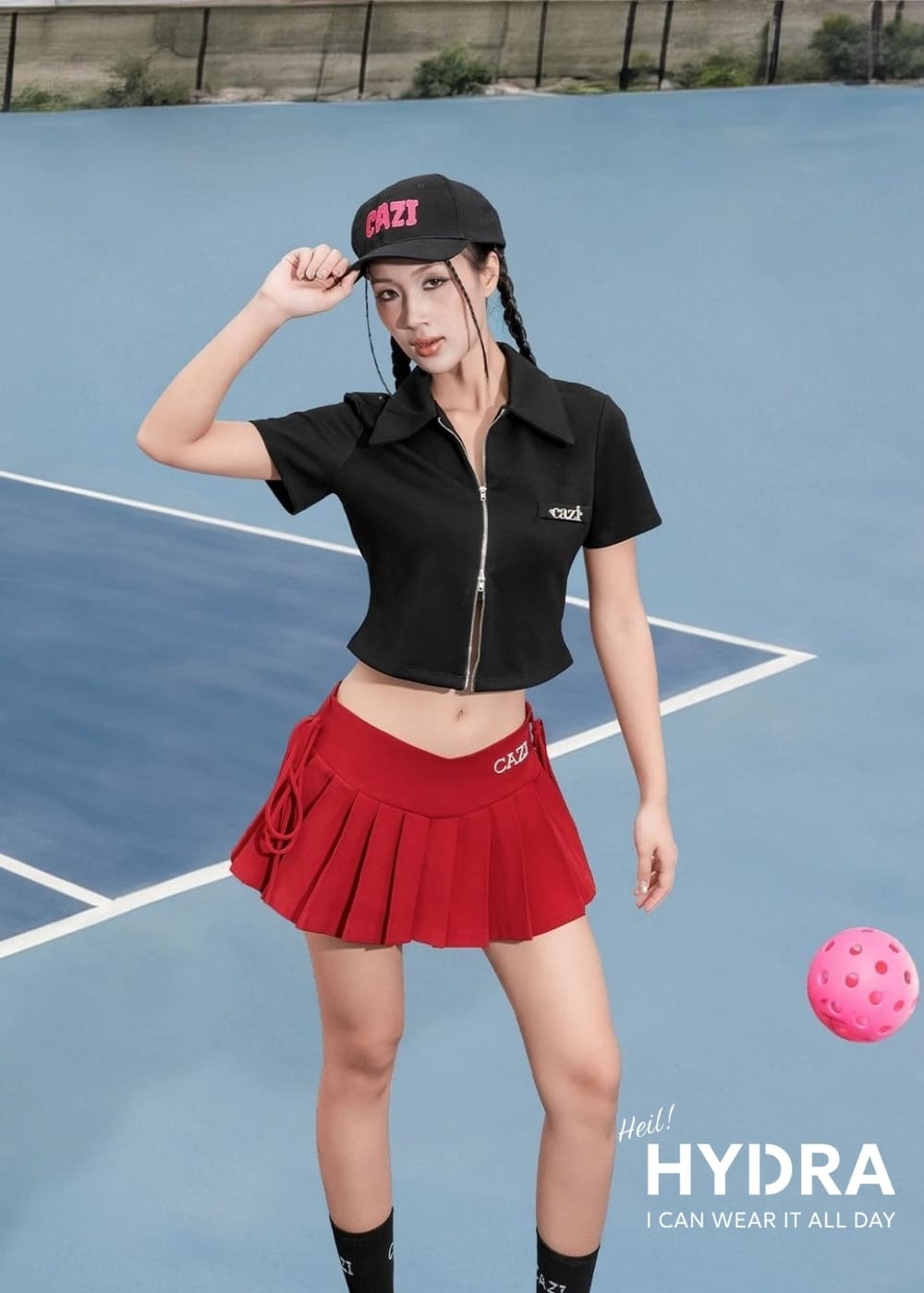 Sự kết hợp giữa áo thun ôm body và chân váy tennis là công thức "hack tuổi" tuyệt vời, mang lại vẻ đẹp trẻ trung và năng động. Thiết kế áo thun ôm sát cơ thể tôn dáng kết hợp cùng chân váy tenis xếp ly mềm mại tạo nên tổng thể duyên dáng, cực kỳ phù hợp cho những buổi chơi thể thao ngoài trời.