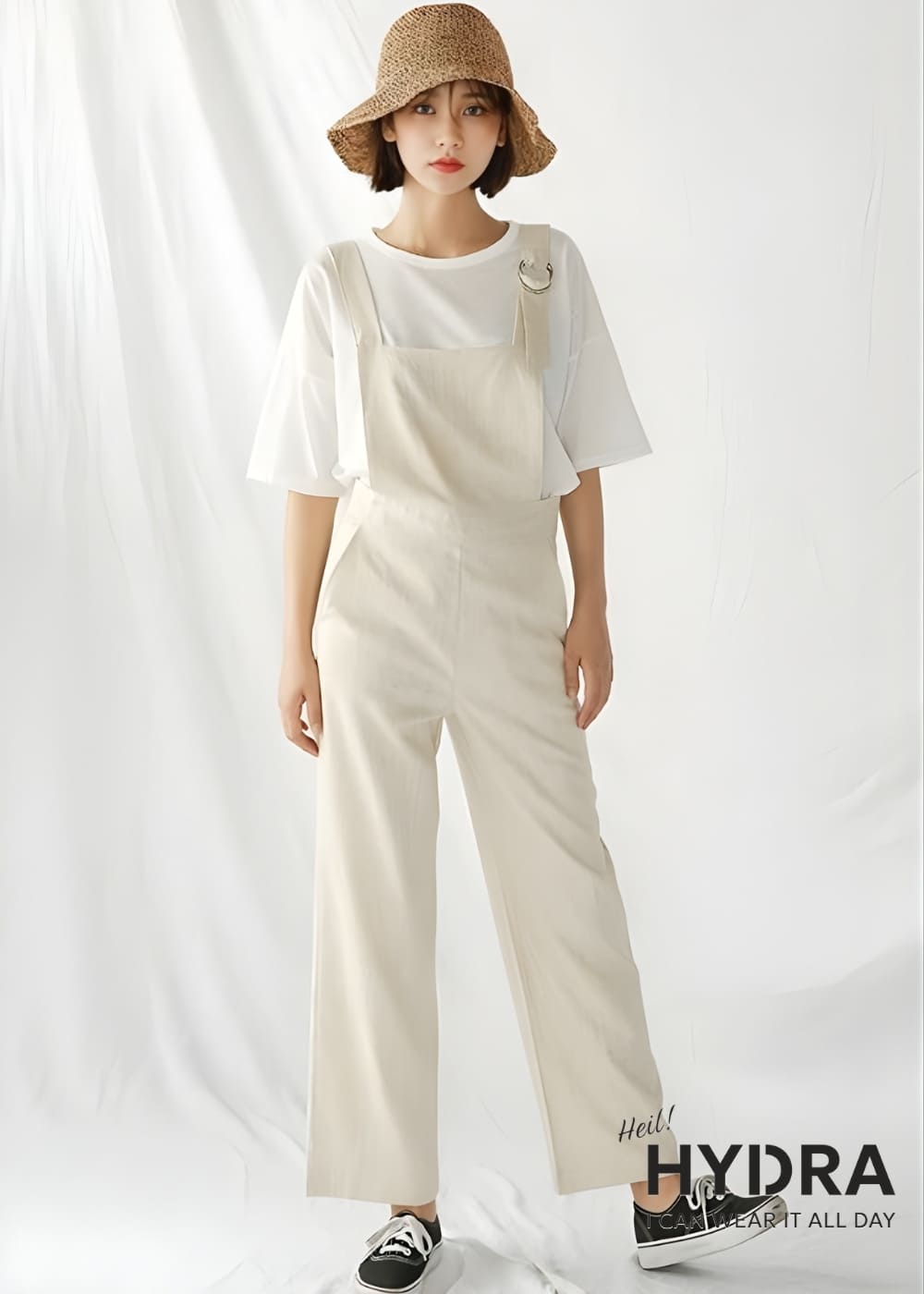 Phối đồ áo thun form rộng nữ với quần yếm