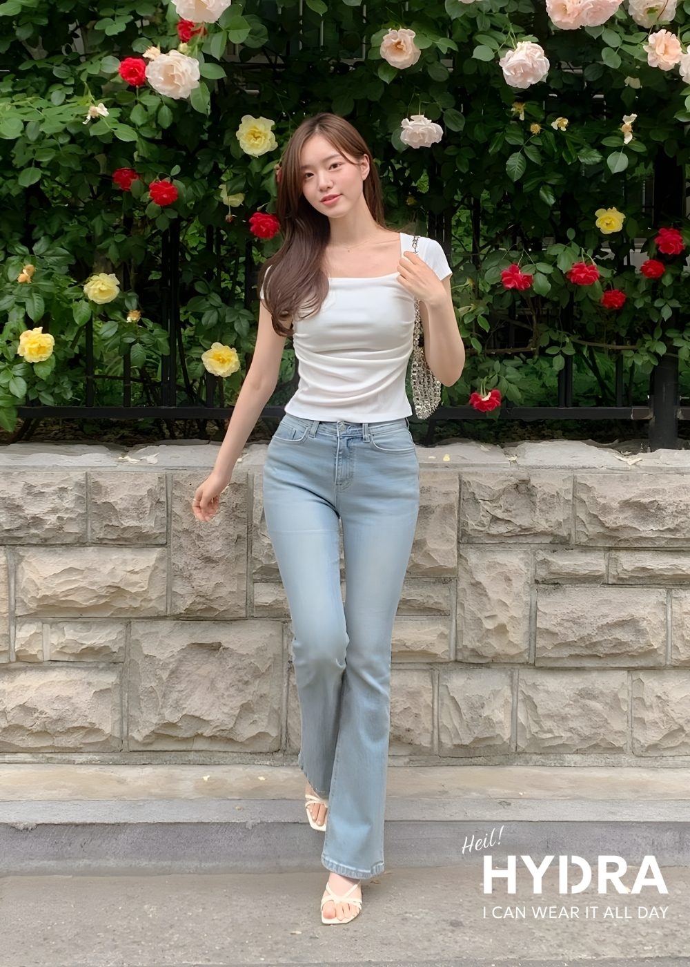 Tùy vào sở thích, bạn có thể chọn quần jean skinny để tôn dáng thon gọn hoặc quần baggy, quần ống loe để khẳng định cá tính riêng. Để hoàn thiện outfit, một đôi sneaker trắng hoặc sandal cao gót sẽ là lựa chọn tuyệt vời.