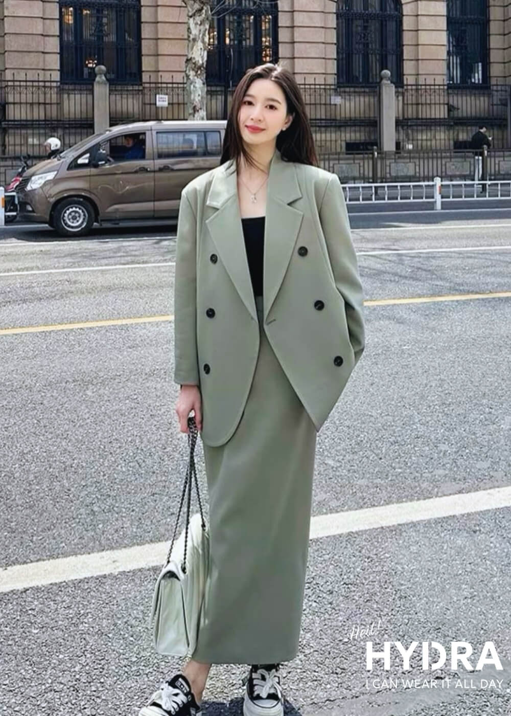 Trong cách phối đồ với chân váy chữ A dáng dài, bạn có thể linh hoạt chọn blazer dáng ngắn hoặc blazer oversize tùy thuộc vào phong cách muốn hướng đến. Outfit này rất phù hợp với môi trường công sở hoặc những buổi gặp gỡ cần sự chỉn chu và thanh lịch. Nếu muốn tạo điểm nhấn nổi bật, bạn nên chọn blazer họa tiết kẻ như kẻ caro hoặc blazer làm từ chất liệu vải tweed nhẹ nhàng.