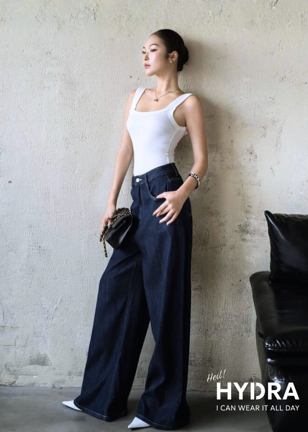 Áo tank top và quần jean ống suông