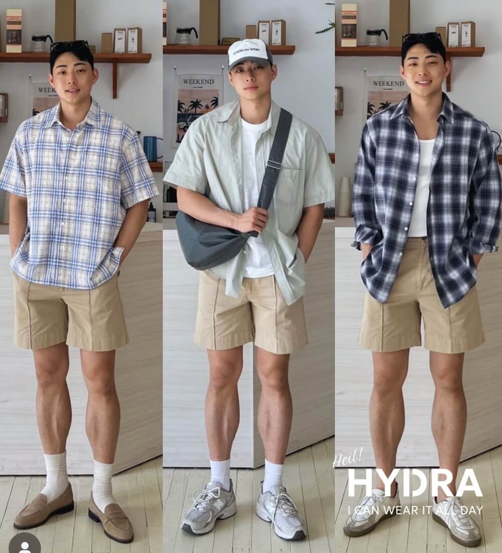 Kết hợp quần short nam với áo sơ mi khoác ngoài là ý tưởng phối đồ thú vị, mang lại cảm giác phóng khoáng cho các bạn nam. Trang phục này đặc biệt phù hợp với những chàng trai thích style năng động, thích nhiều phong cách mix & match để tạo nên outfit mới mẻ, cá tính và đầy sức hút.