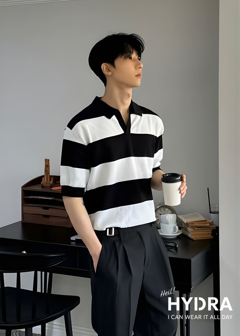 Áo kẻ sọc phối đồ quần đen là công thức mix-match thông minh nếu bạn muốn outfit bớt đơn điệu nhưng vẫn giữ được sự tinh tế. Điểm cộng lớn của item này nằm ở khả năng “hack dáng” và che khuyết điểm. Nếu bạn có thân hình gầy, áo sọc ngang sẽ giúp cơ thể trông cân đối và đầy đặn hơn. Trong trường hợp những anh chàng mũm mĩm muốn vóc dáng trở nên gọn gàng, sọc dọc sẽ tạo hiệu ứng kéo dài cơ thể rất hiệu quả.