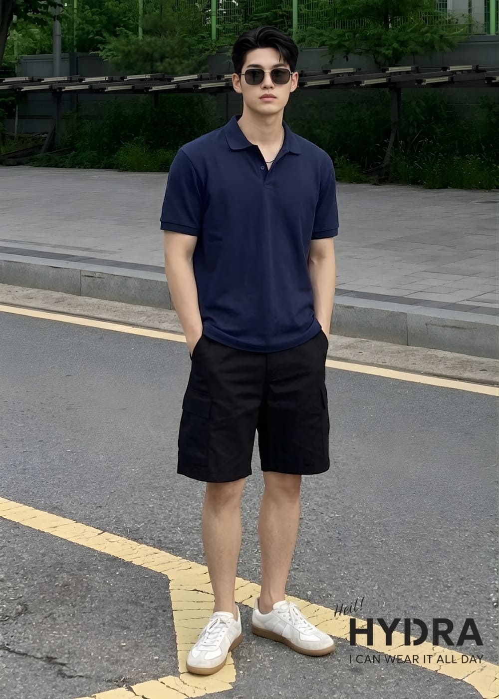 Đối với những ngày nóng bức hoặc khi anh em muốn phối đồ đi biển, quần short đen phối cùng áo polo sẽ giúp bạn trông mát mẻ nhưng vẫn giữ được nét lịch sự và gọn gàng.