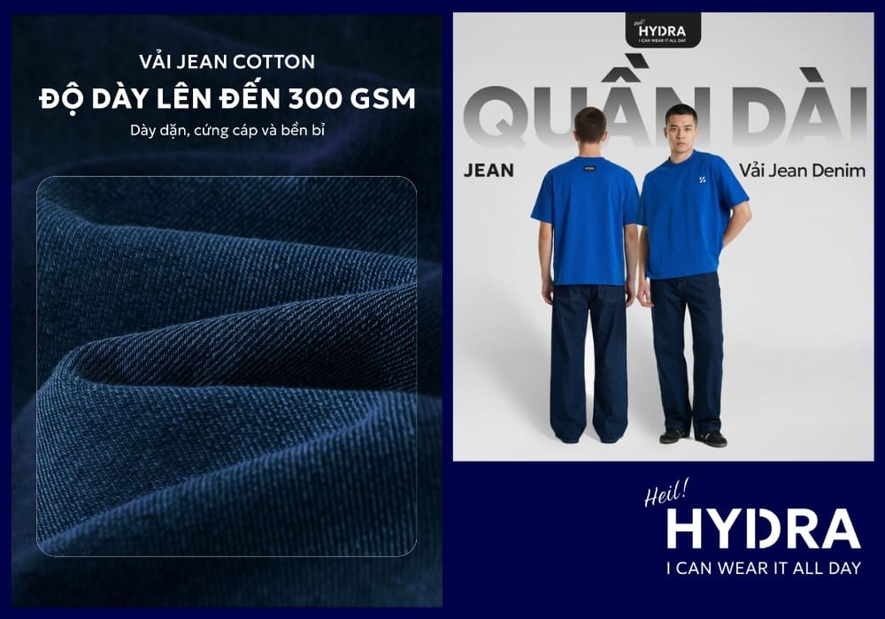 Vải denim là một trong những chất liệu quen thuộc nhất trong thời trang, đặc biệt khi nhắc đến những chiếc quần jeans bền bỉ và cá tính. Tuy nhiên, không ít người vẫn cho rằng denim và jeans là một hoặc dùng hai khái niệm này thay thế cho nhau. Để hiểu rõ hơn vải denim là vải gì, đặc điểm của chất liệu này cũng như sự khác biệt giữa denim và jean, hãy cùng HYDRA Shop tìm hiểu tất tần tật trong bài viết này.