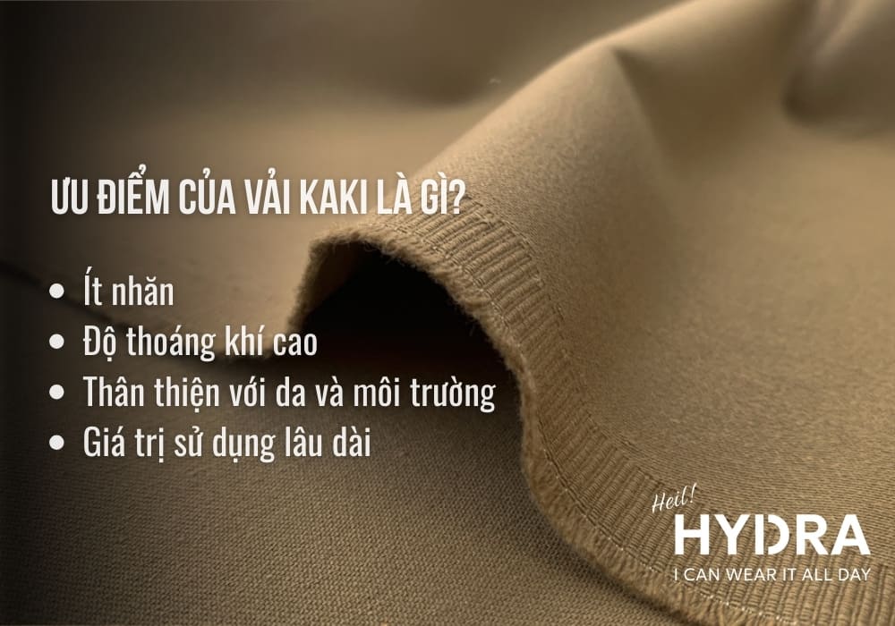 Vải kaki là chất liệu được giới trẻ ưa chuộng nhờ độ bền cao, form đẹp, tạo cảm giác gọn gàng, nam tính nhưng vẫn đủ thoải mái để mặc mỗi ngày. Thế nhưng, nhiều người vẫn chưa thực sự hiểu vải kaki là gì, ưu nhược điểm cũng như vì sao loại vải này lại được ứng dụng nhiều trong thời trang. Nếu bạn cũng đang tò mò về các loại vải kaki cũng như cách ứng dụng chúng trong trang phục hiện đại thì hãy cùng HYDRA Shop tìm hiểu chi tiết trong bài viết này nhé.
