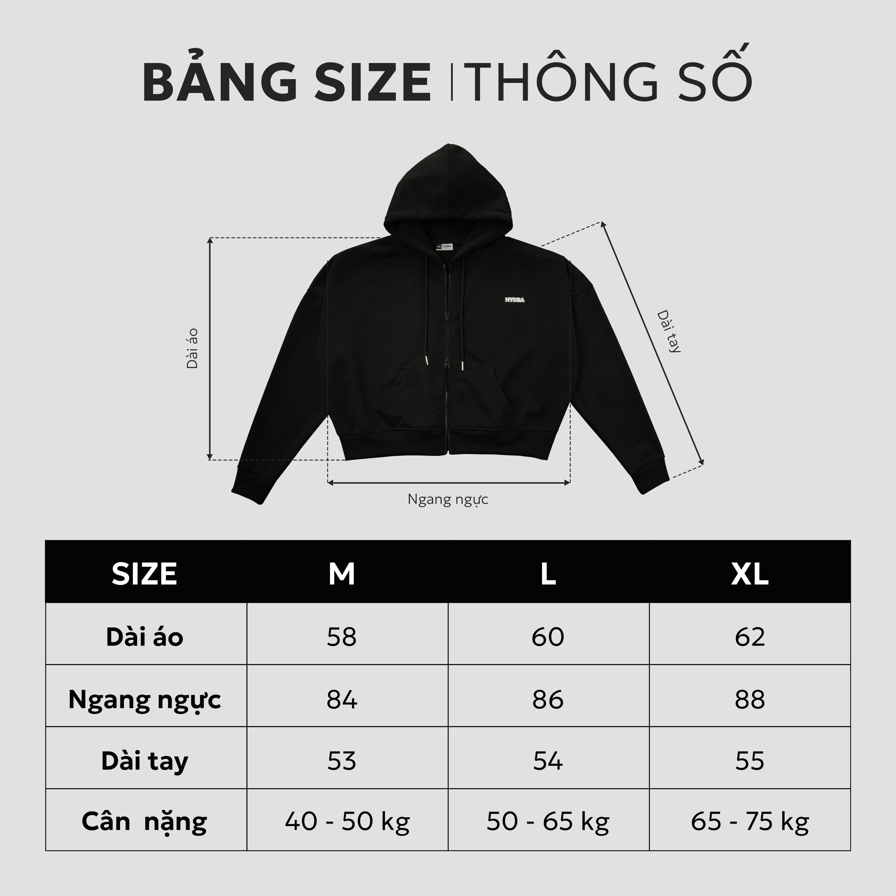 Chọn đúng size là yếu tố quyết định việc áo hoodie nam, nữ có mặc đẹp hay không. Để giúp bạn giải quyết “bài toán” này, HYDRA cung cấp bảng size áo khoác được thiết kế dựa trên số đo chuẩn của người Việt, giúp bạn dễ dàng tìm thấy chiếc áo hoodie đẹp phù hợp nhất với chiều cao và cân nặng của mình.