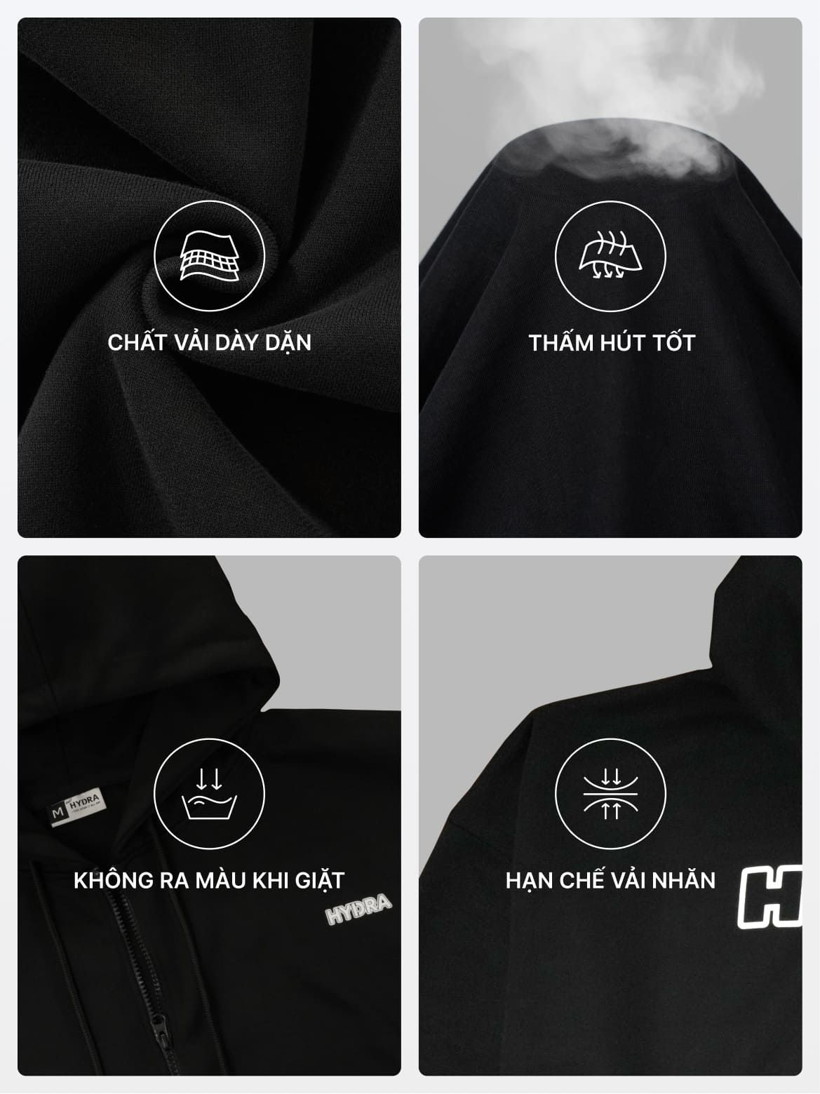 Nhằm giúp anh em phối đồ linh hoạt hơn, HYDRA mang đến các mẫu hoodie đẹp tập trung vào hai gam màu đen và trắng. Bạn có thể kết hợp cùng quần jean, quần short, jogger hay layer với áo thun để tạo nhiều phong cách khác nhau, từ năng động, trẻ trung đến cá tính, đường phố. Chúng mình tin rằng, một chiếc hoodie tốt là chiếc mặc được nhiều năm mà không thấy chán, và đó cũng là điều HYDRA hướng tới.