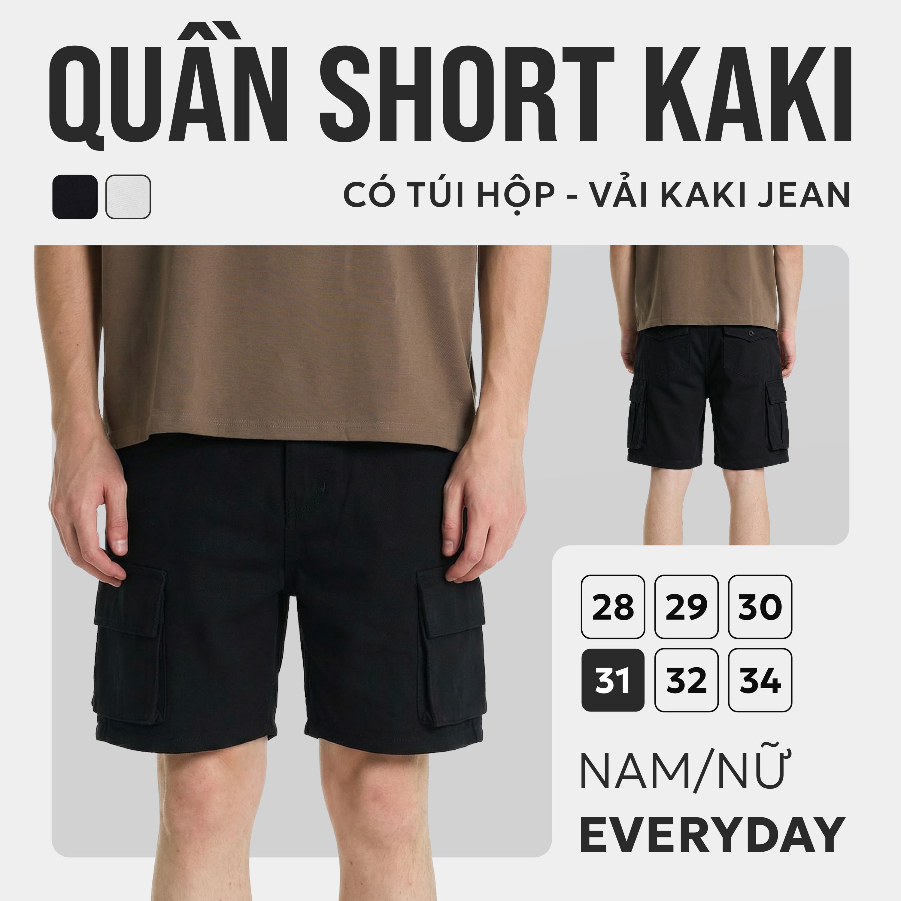 - Bảng màu Basic, tiện dụng: Các mẫu short kaki nam nữ tại HYDRA tập trung vào hai tông màu trắng và đen kinh điển, giúp bạn dễ dàng làm chủ mọi outfit mà không cần tốn quá nhiều thời gian suy nghĩ.